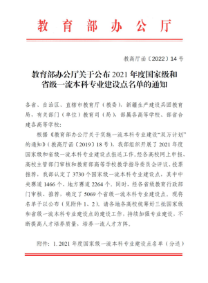 近日,教育部公布了2021年度国家级一流本科专业建设点名单,我院广播电视编导专业入选国家级一流本科专业建设点。